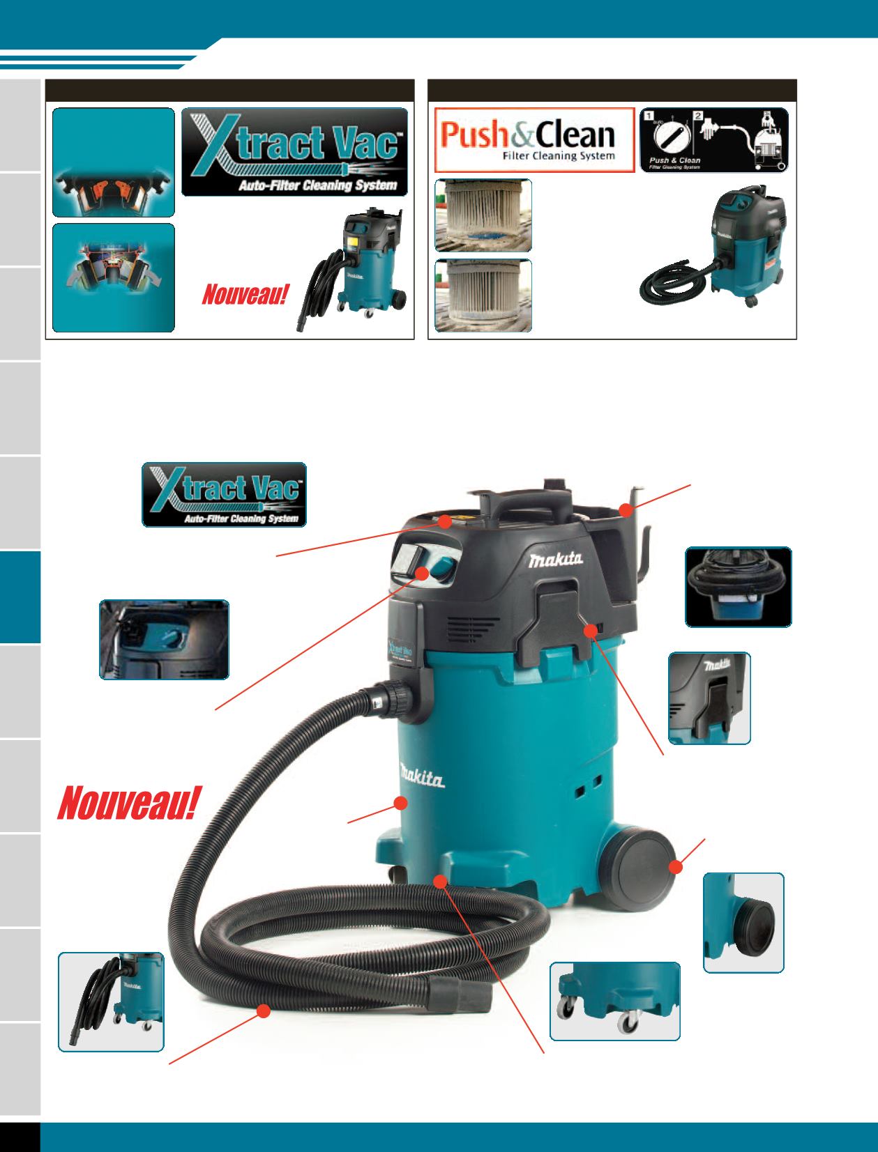 Les systèmes Xtract Vac et Nettoyage de filtre Push-Clean de Makita permet à l’utilisateur de