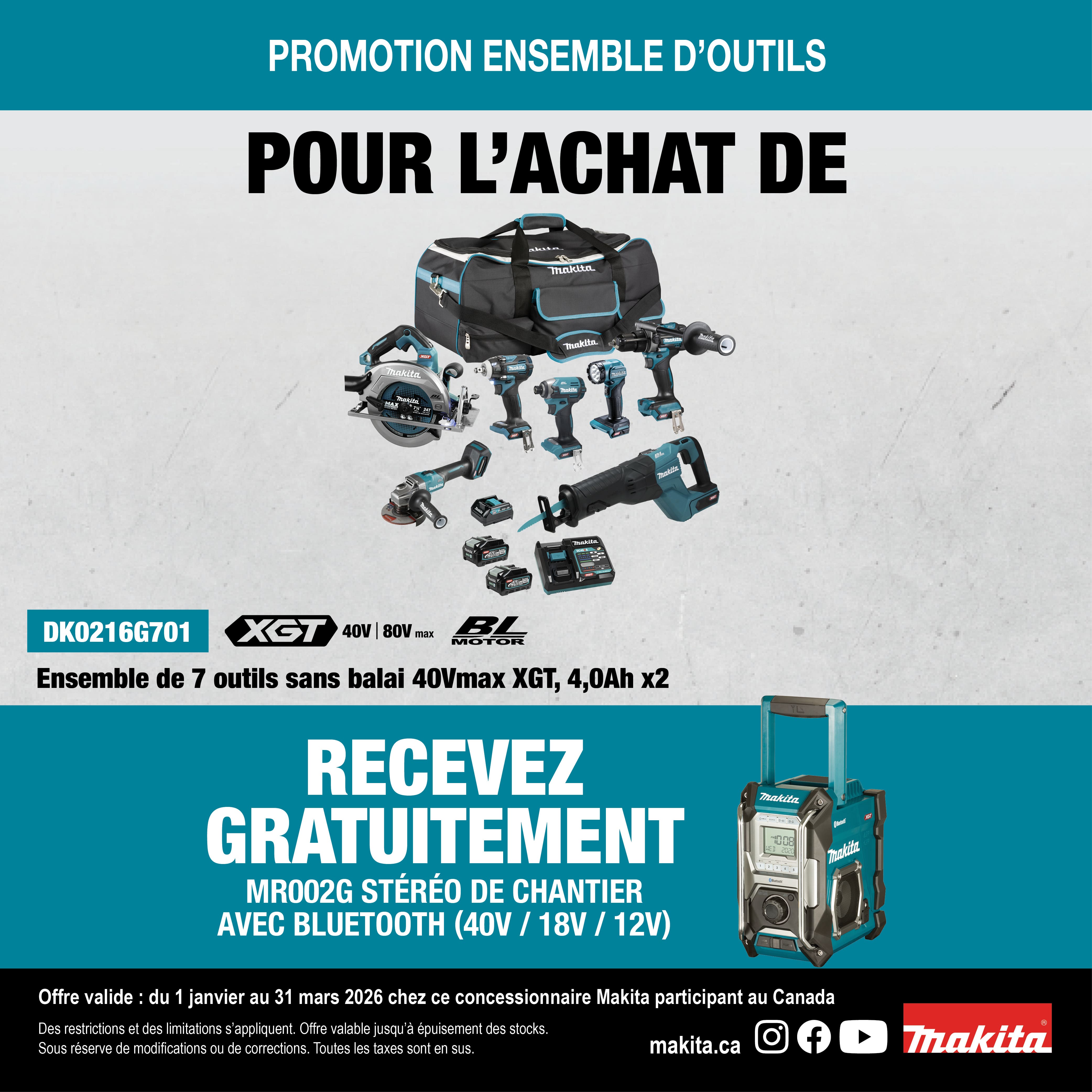 Obtenez des OUTILS ET ACCESSOIRES GRATUITSProfitez de ces OFFRES EXCLUSIVESde Makita....