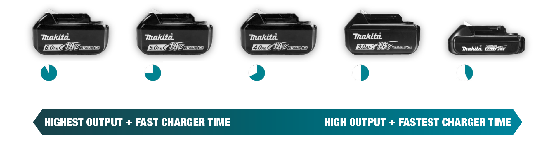 The LXT Battery delivers constant power and longer run time, even in extreme temperatures. The charger communicates with the battery’s built-in chip to optimize battery life, controlling current, voltage, and temperature. A built-in fan circulates air through the battery during the charging process to cool the battery for faster charge time.