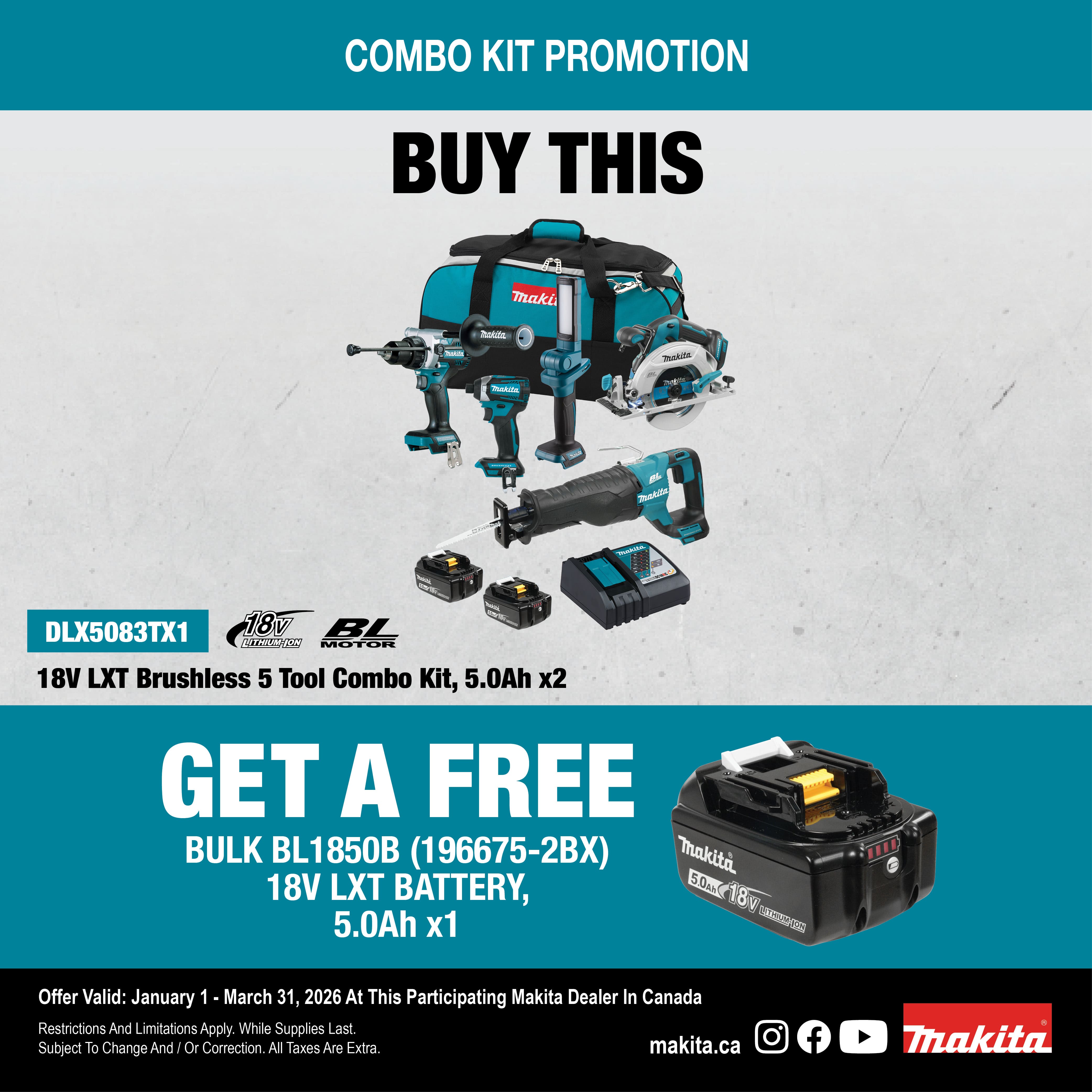 • Two 18V (5.0 Ah) Li-Ion Batteries BL1850B (196675-2)