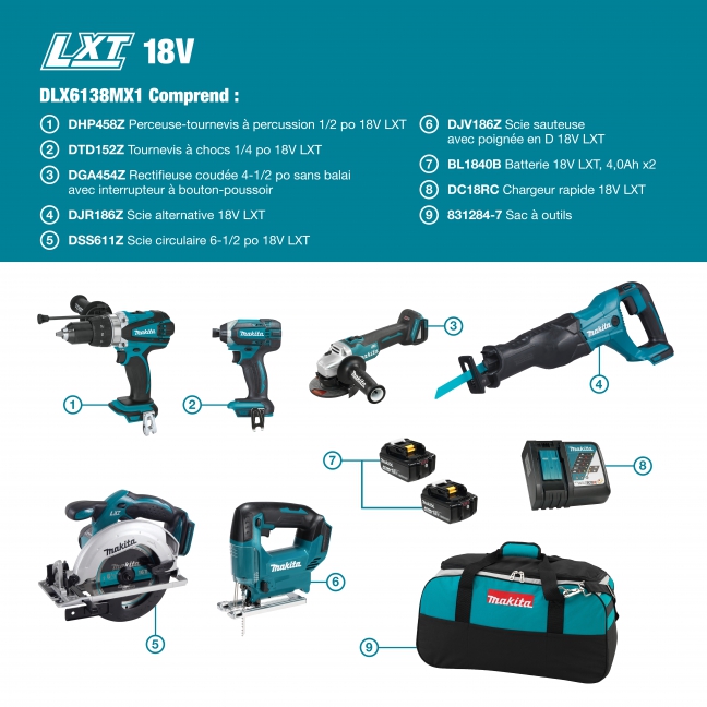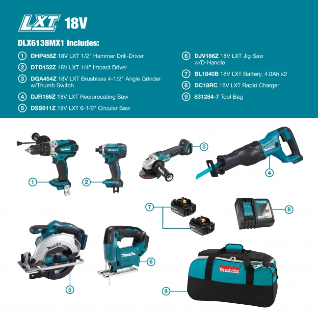 Home / Tool / Cordless / LXT / Combo Kits / DLX6138MX1