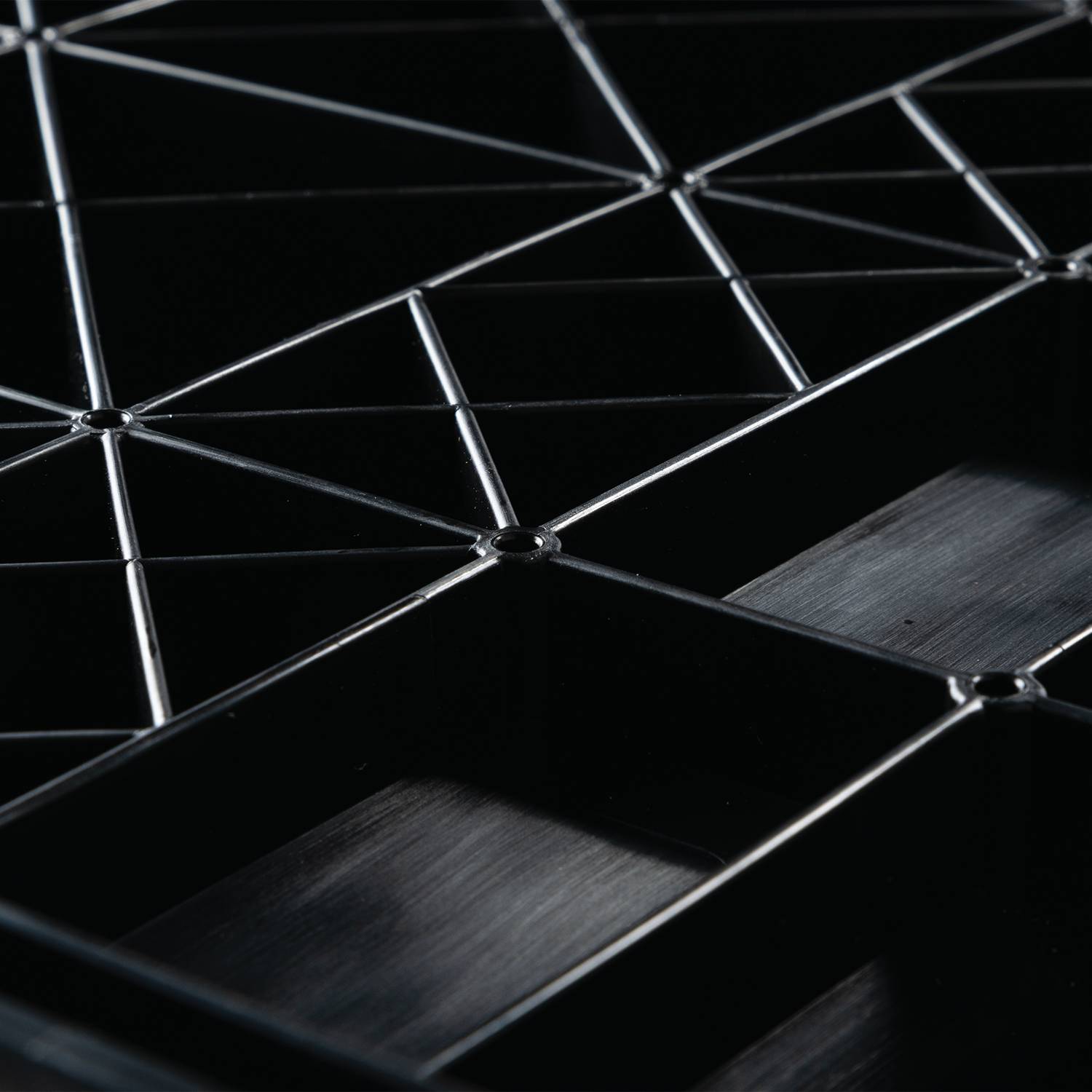 • Large footprint to connect one large box, two medium boxes, or four compact boxes
