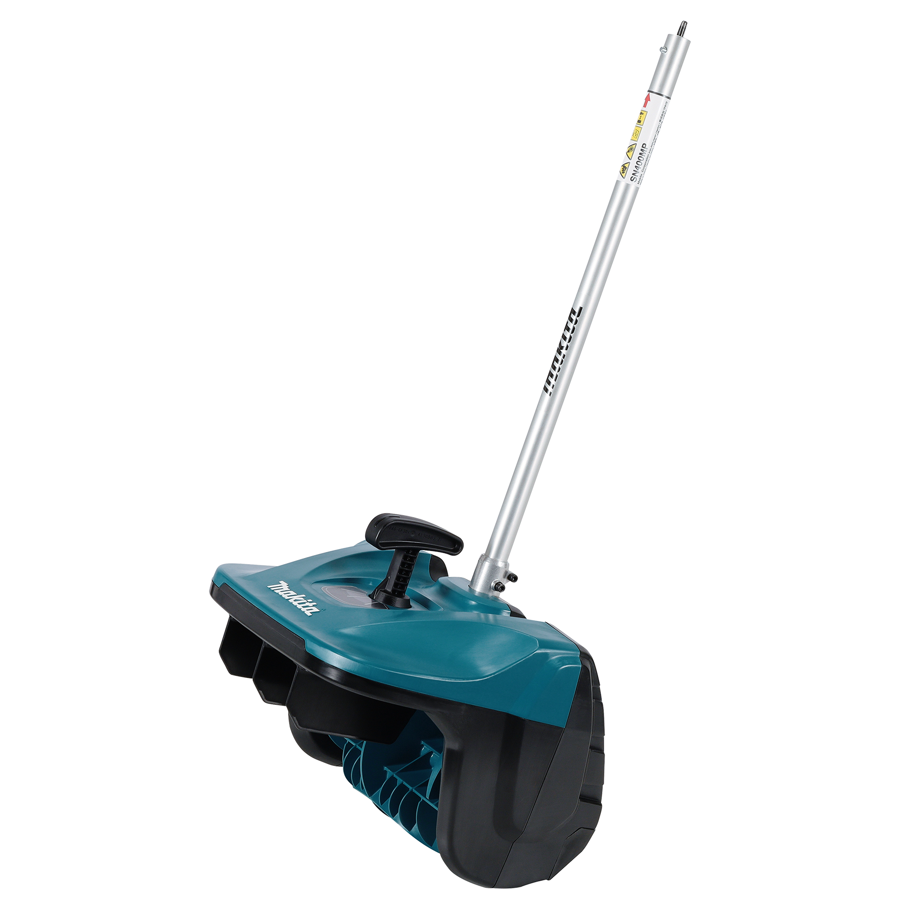 Designed to easily clear accumulated snow on pathways, sidewalks, or driveways. Clears up to 5 parking spots on a single charge with model DUX60 and two 5.0Ah batteries on high speed. It offers directional snow throwing with three adjustable angles: straight, 30° left, or 30° right. Powered by a Genuine Makita Purpose-Built Brushless Motor with Active Feedback Sensing Technology (AFT) for enhanced performance and safety.